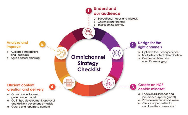 Omnichannel strategies will enable Medical Affairs teams to create personalised experiences that put our audience at the centre of our communications planning, meaning they can find the information they require, and ensuring that we cater to their educational needs with a suitable format (eg, text, video, infographics, podcast) according to their preferences. Importantly omnichannel is not a digital strategy, but a strategy that accommodates any channel the audience uses.